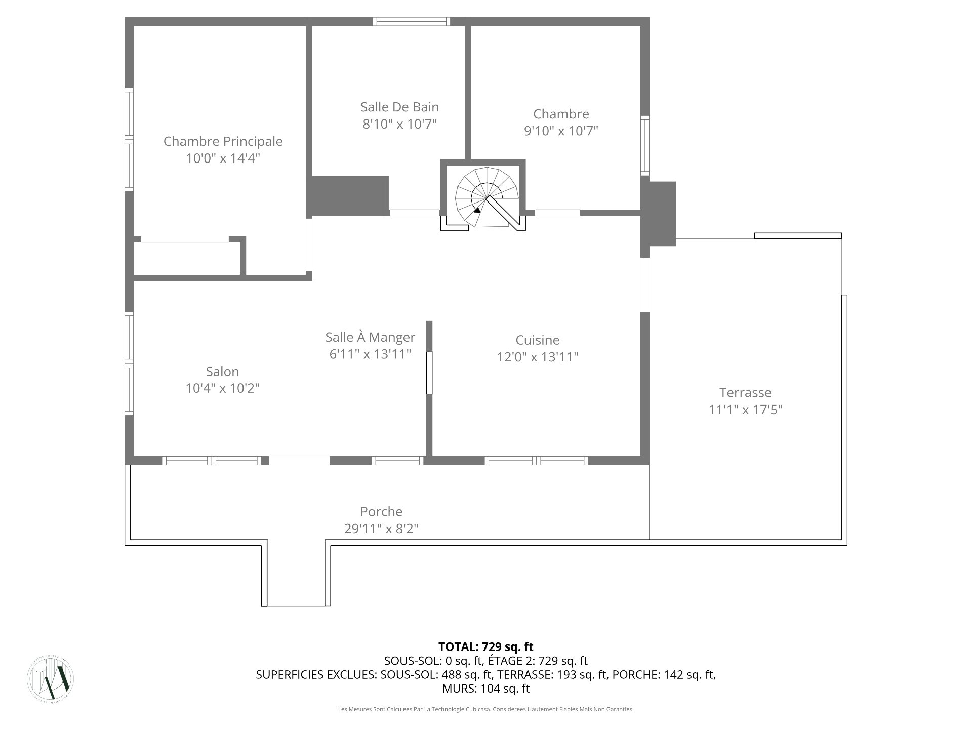 | Salle de bains | 8.10 x 10.7 P | Rez-de-chaussée | Céramique |